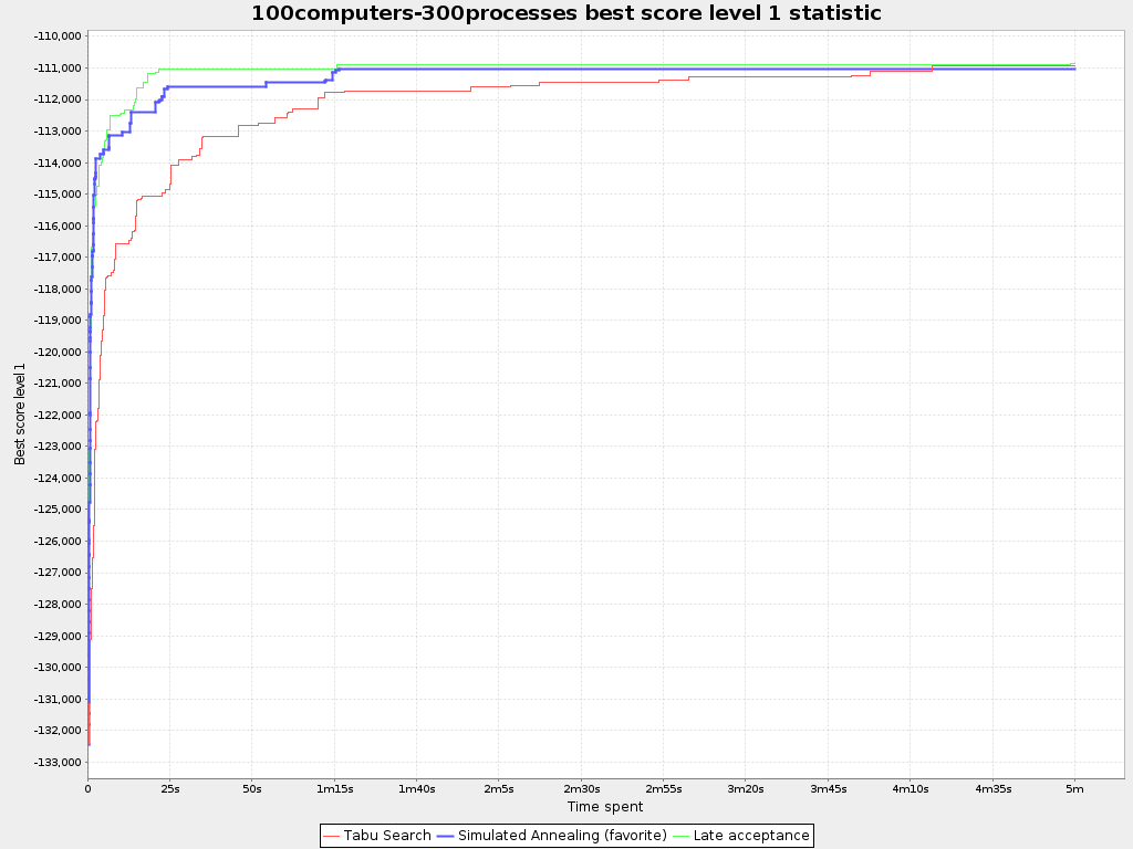 OptaPlanner supports several optimization algorithms to efficiently wade through that incredibly large number of possible solutions. Depending on the use case, some optimization algorithms perform better than others, but it’s impossible to tell in advance. With OptaPlanner, it is easy to switch the optimization algorithm, by changing the solver configuration in a few lines of XML or code.
